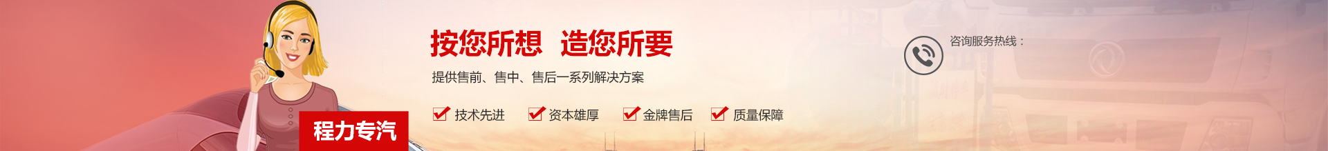 程力專用汽車股份有限公司銷售二十七分公司是定點生產(chǎn)各類專用汽車的專業(yè)廠家,大型專用汽車制造廠。國內(nèi)園林綠化、石油化工、市政環(huán)衛(wèi)、壓力容器專用汽車制造商。注冊商標(biāo)“程力威”牌,國家產(chǎn)品代碼:“CLW”。東風(fēng)、解放公司的重要合作伙伴,主要從事各類專用汽車的生產(chǎn)制造業(yè)務(wù),同時也銷售各大型廠家的整車及配件。公司擁有自行出口權(quán),產(chǎn)品占據(jù)大量國外市場,其主導(dǎo)品種有灑水車、油罐車、垃圾車、吸糞車、吸污車、自卸車、廂式貨車、半掛車、清障車、隨車吊、高空作業(yè)車、教練車、散裝水泥車、化工車、消防車、汽車配件、水泥攪拌車、牽引車等八大系列100多個品種車型。同時批發(fā)東風(fēng)、解放、楚風(fēng)各種二類底盤。